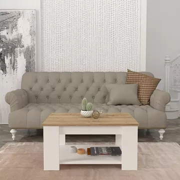 Τραπεζάκι Σαλονιού ArteLibre ALDEN Λευκό/Φυσικό Μοριοσανίδα/Μελαμίνη 90x60x42cm