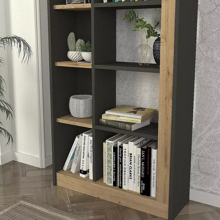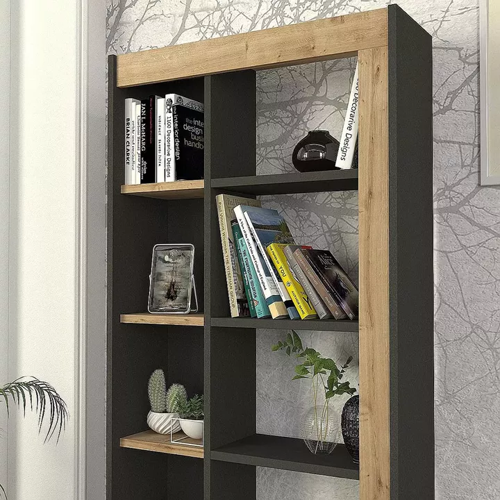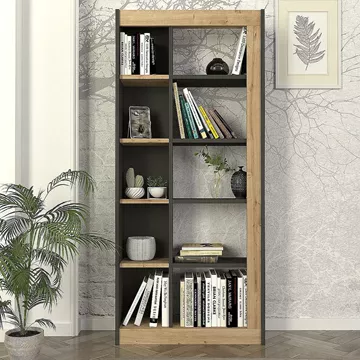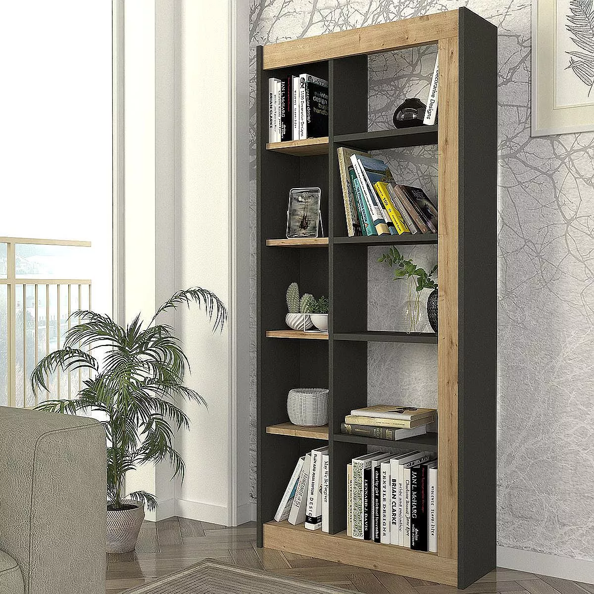 Βιβλιοθήκη ArteLibre ARAI Φυσικό/Ανθρακί Μοριοσανίδα/Μελαμίνη 75x25x148cm