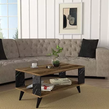 Τραπεζάκι Σαλονιού ArteLibre BICKEL Καρυδί/Μαύρο Μοριοσανίδα/Μελαμίνη 90x54x42cm