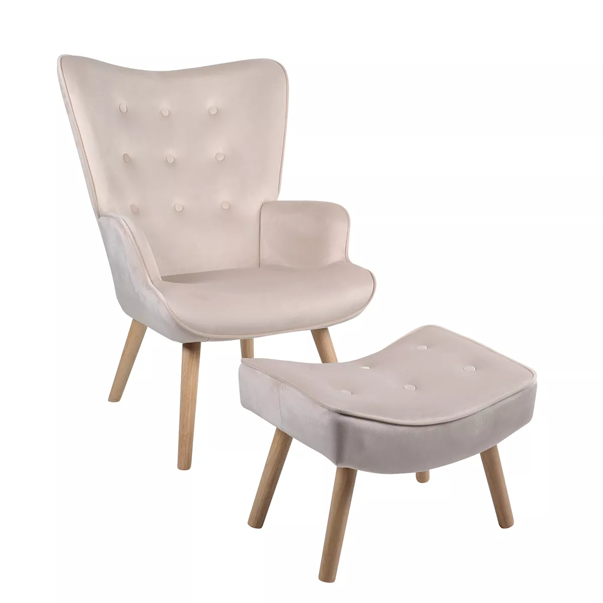 Πολυθρόνα Μπερζέρα Με Υποπόδιο ArteLibre ANIDORI Μπεζ Βελούδο/Ξύλο 73x69x96cm