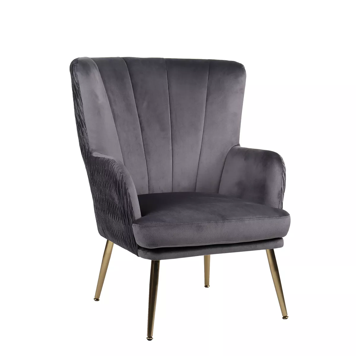 Πολυθρόνα ArteLibre KOLDENREE Γκρι Βελούδο/Μέταλλο/Ξύλο 74x72x91cm