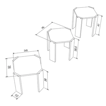 Ζιγκόν ArteLibre HANSEL Δρυς/Λευκό Μοριοσανίδα/Μελαμίνη 44.5x44.5cm Υ41/38.5/36cm Σετ 3Τμχ