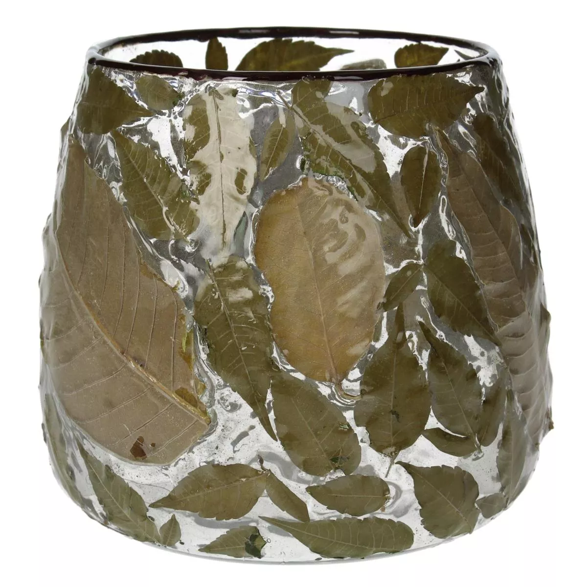 Κηροπήγιο ArteLibre Φύλλα Τσαγιού Διάφανο Γυαλί 15x15x15cm