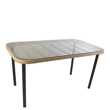 Τραπέζι Κήπου ArteLibre AMPLAS Φυσικό/Μαύρο Μέταλλο/Rattan/Γυαλί 140x80x73cm