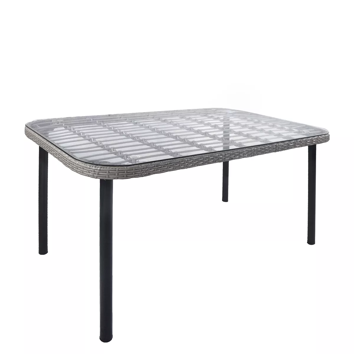 Τραπέζι Κήπου ArteLibre AMPLAS Γκρι/Μαύρο Μέταλλο/Rattan/Γυαλί 140x80x73cm