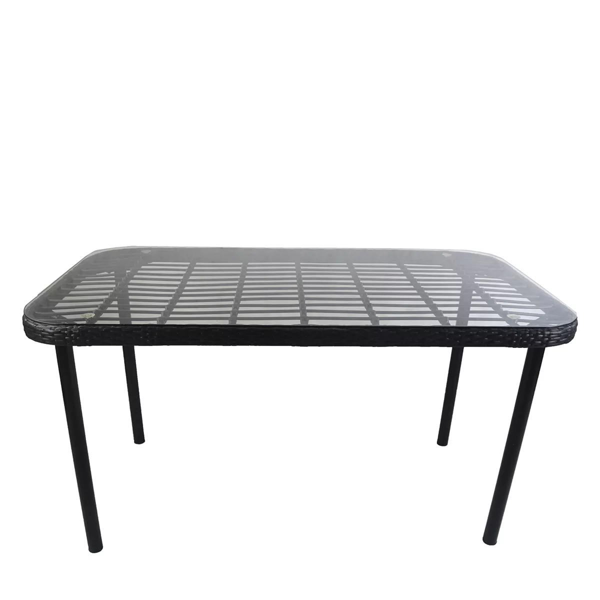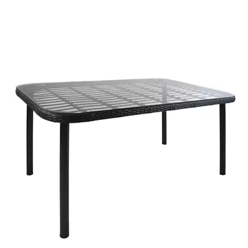 Τραπέζι Κήπου ArteLibre AMPLAS Μαύρο Μέταλλο/Rattan/Γυαλί 140x80x73cm