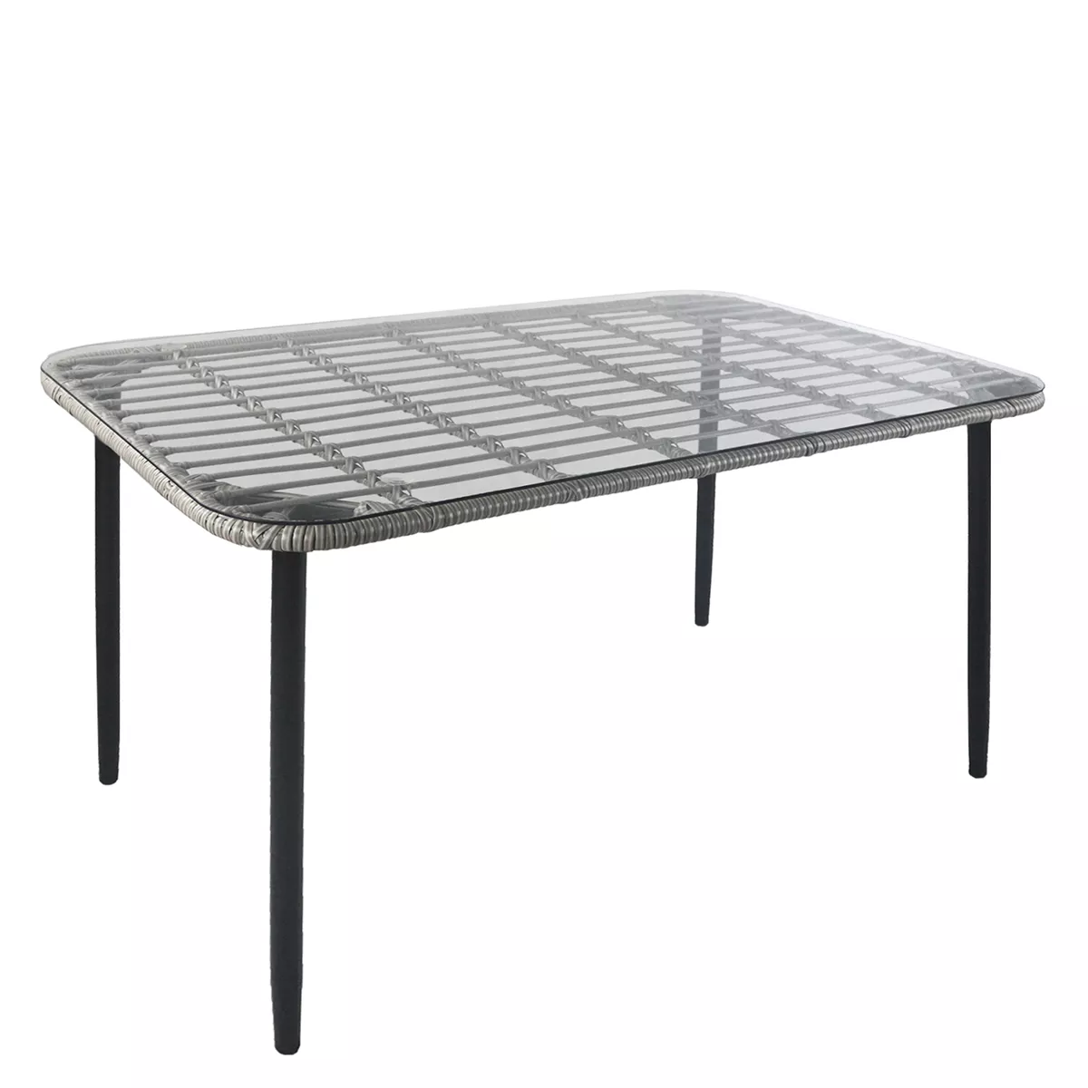 Τραπέζι Κήπου ArteLibre ANNIUS Γκρι/Μαύρο Μέταλλο/Rattan/Γυαλί 120x70x78cm