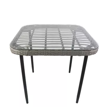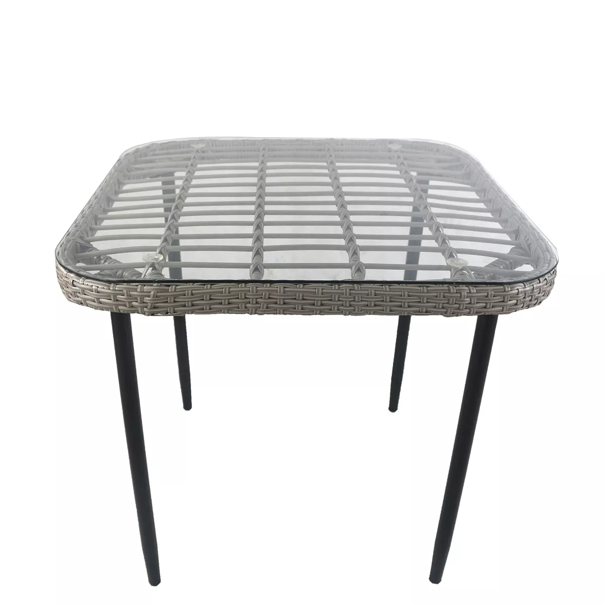 Τραπέζι Κήπου ArteLibre ANTIUS Γκρι/Μαύρο Μέταλλο/Rattan/Γυαλί 80x80x73cm
