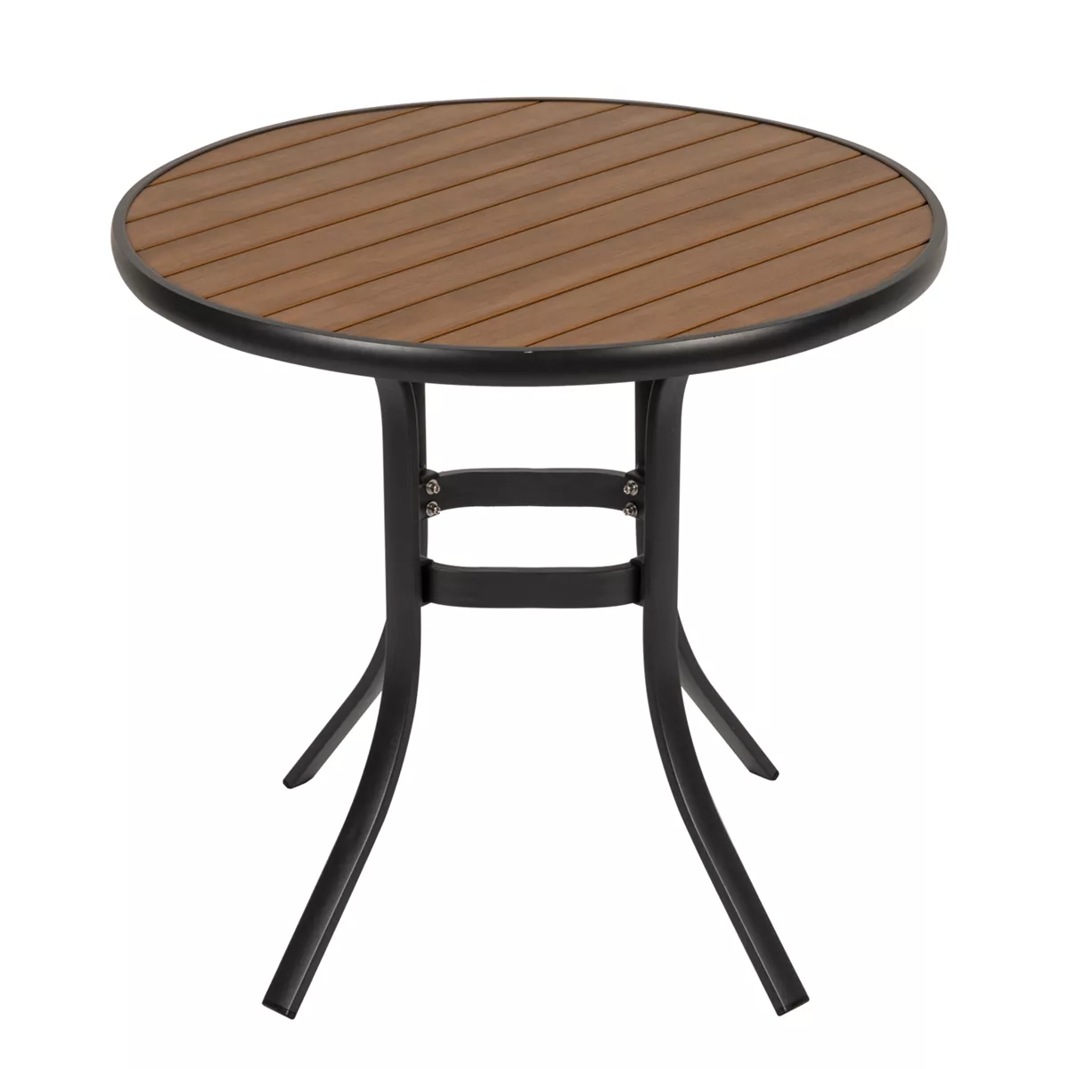 Τραπέζι Κήπου ArteLibre SANAAG Μαύρο/Καρυδί Αλουμίνιο/Ξύλο Φ80x73cm