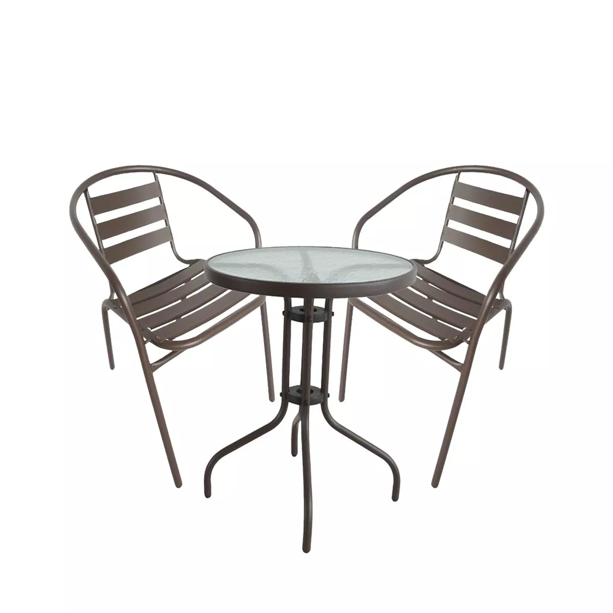 Σετ Τραπεζαρία Κήπου Earth Μέταλλο Καφέ Με 2 Πολυθρόνες