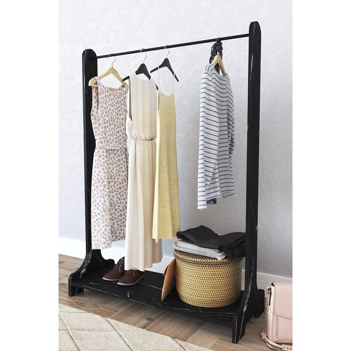 Κρεμάστρα Δαπέδου ArteLibre ORATILE Μαύρο Μοριοσανίδα/Μέταλλο 89x35x128cm