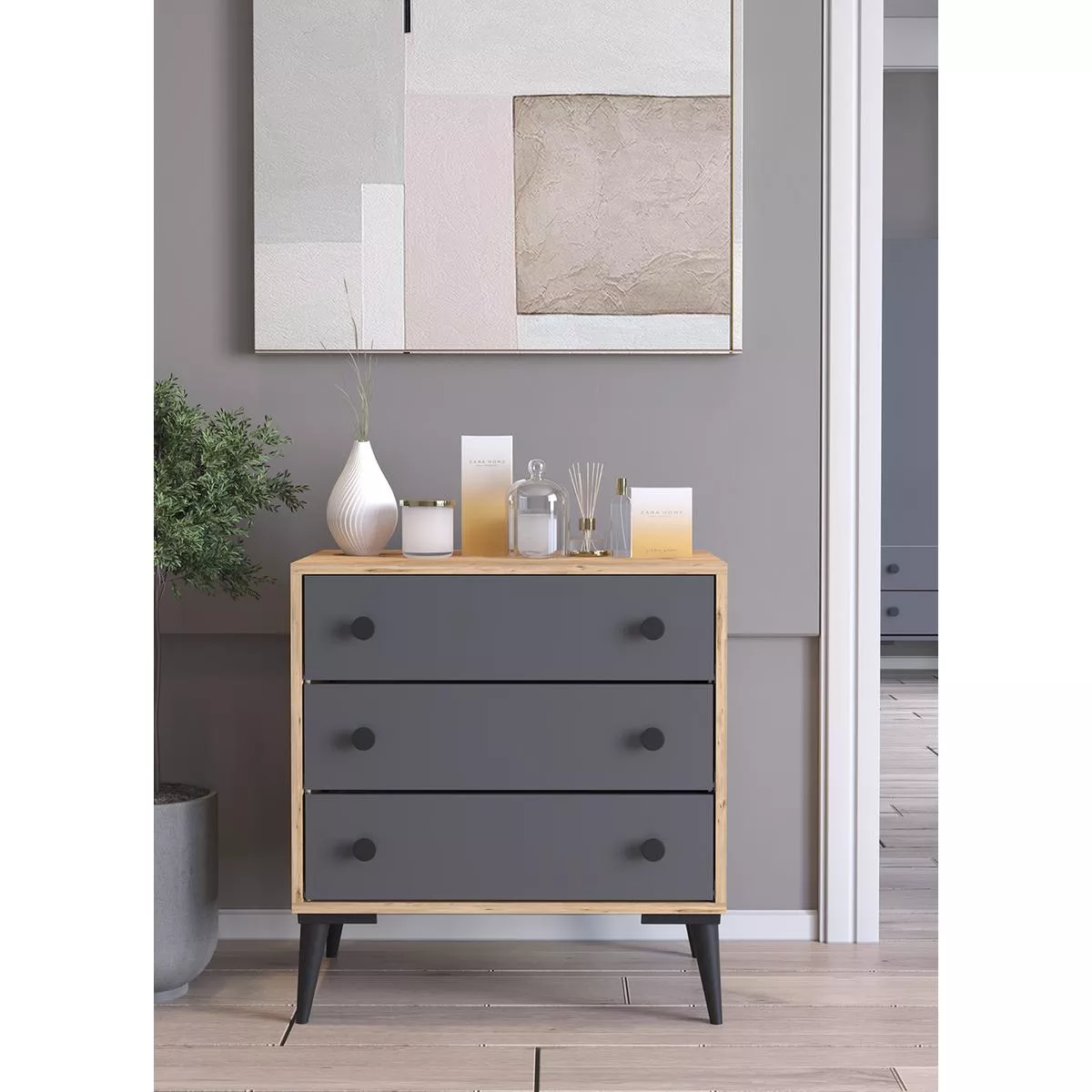 Συρταριέρα ArteLibre AMARI Δρυς/Ανθρακί Μοριοσανίδα 72x43x79cm