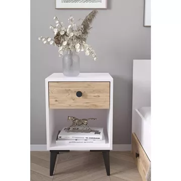 Κομοδίνο ArteLibre AMARI Λευκό/Δρυς Μοριοσανίδα 43x43x67.5cm