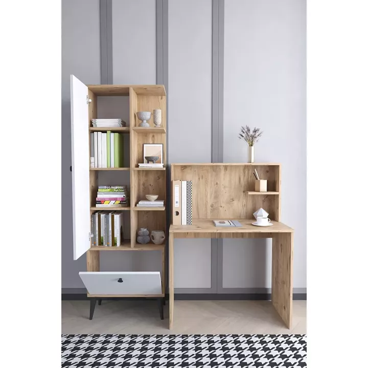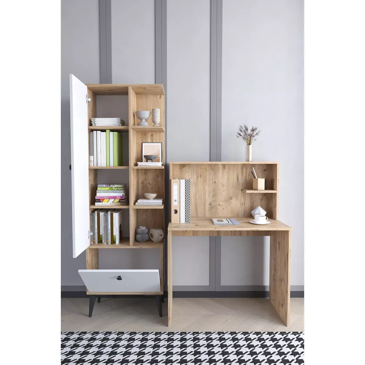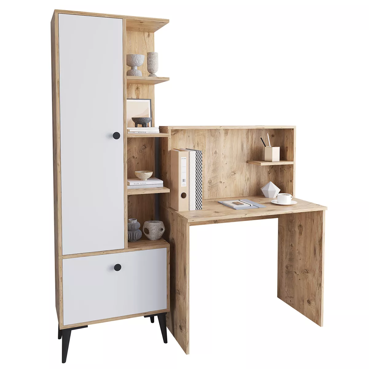 Γραφείο Με Ράφια ArteLibre DIALLO Δρυς/Λευκό Μοριοσανίδα 150x50x123cm