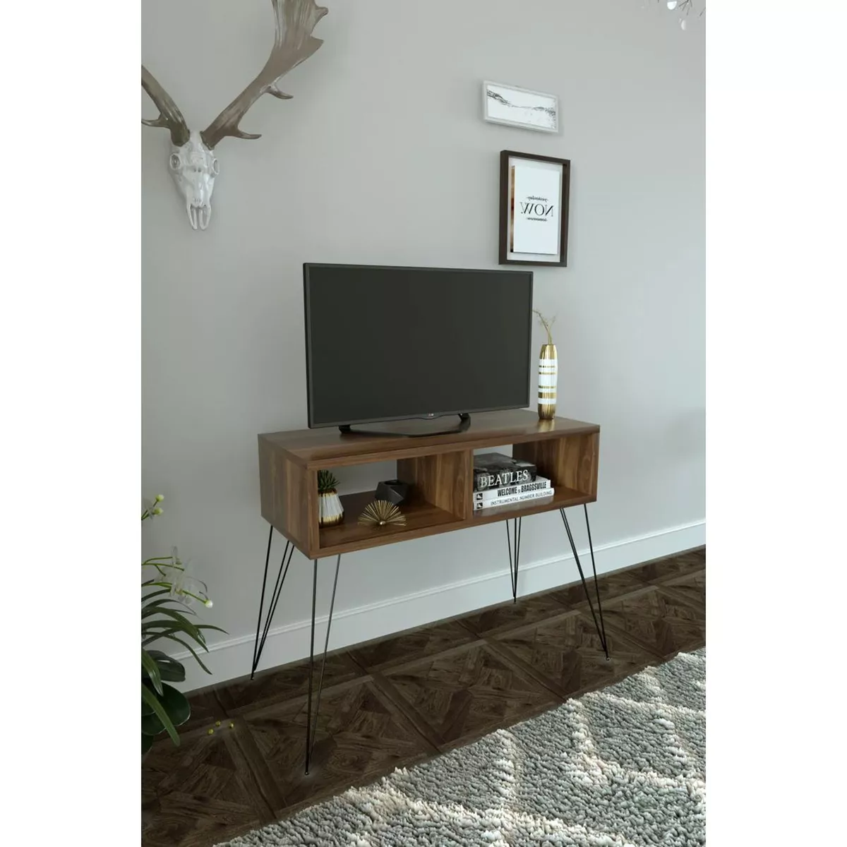 Έπιπλο Τηλεόρασης ArteLibre AMARA Καρυδί Μοριοσανίδα/Μέταλλο 72x30x58.6cm