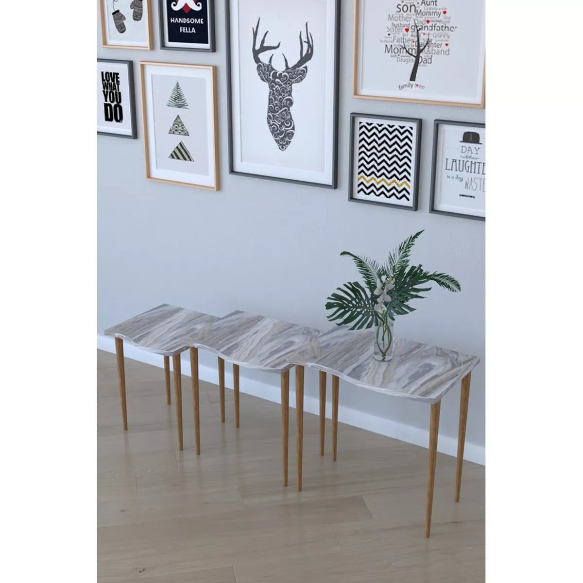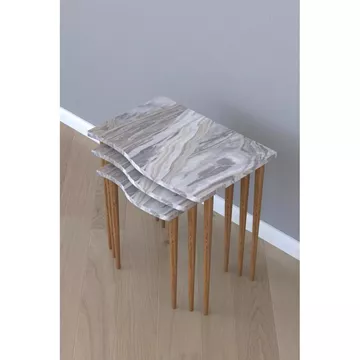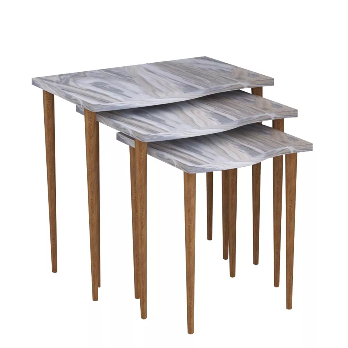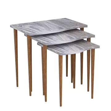 Τραπεζάκι Βοηθητικό ArteLibre NURU Γκρι/Όψη Μαρμάρου Μοριοσανίδα/Ξύλο 53x35x52/44x35x47/35x35x42cm Σετ 3Τμχ