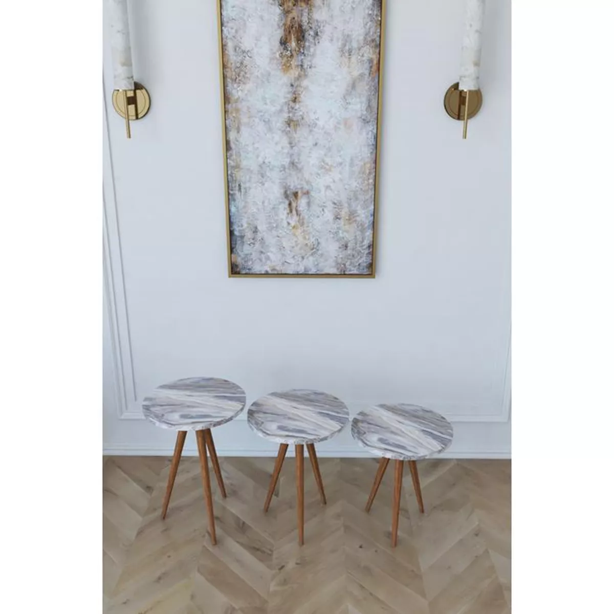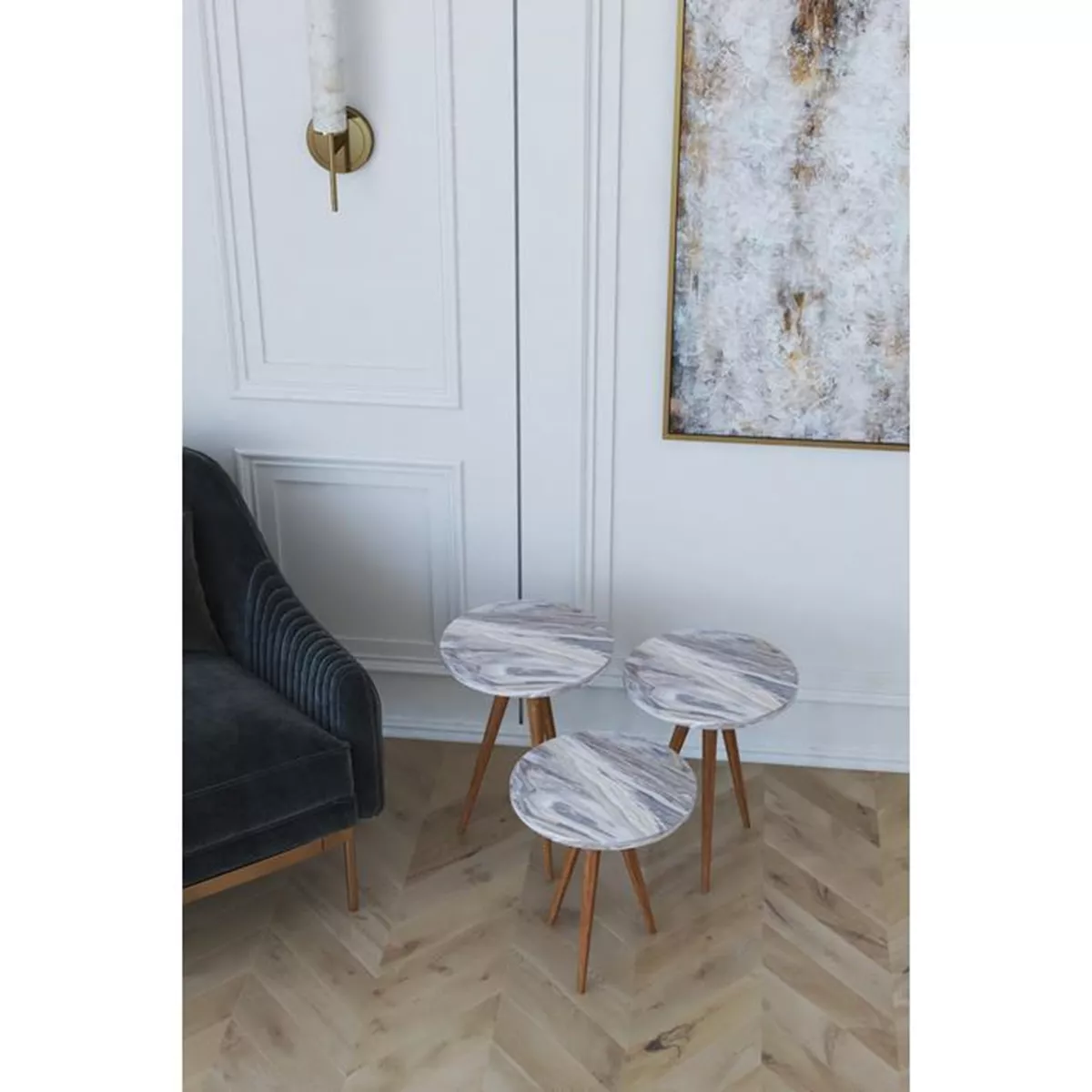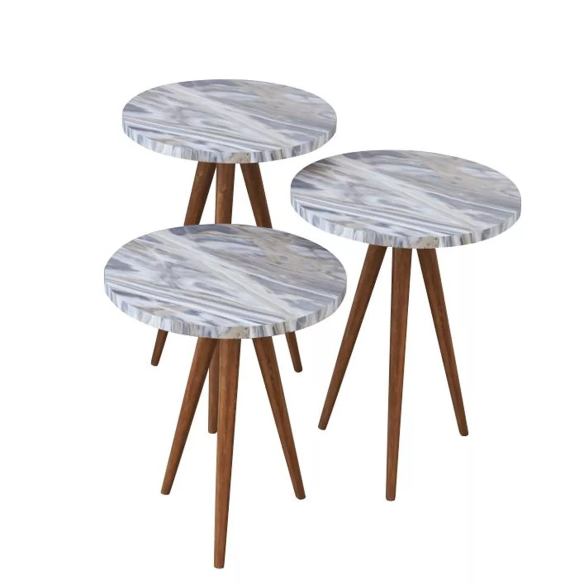 Τραπεζάκι Βοηθητικό ArteLibre BISI Γκρι/Όψη Μαρμάρου Μοριοσανίδα/Ξύλο 33.5x52/33.5x47/33.5x42cm Σετ 3Τμχ