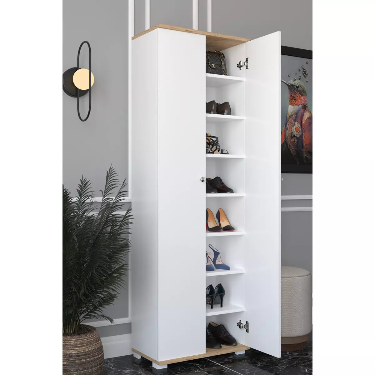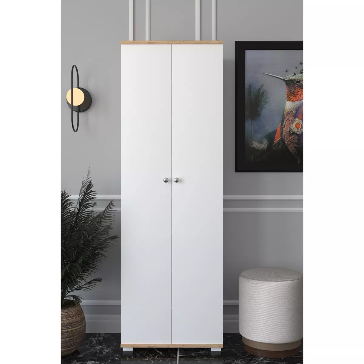 Ντουλάπι ArteLibre ROSELINE Λευκό/Δρυς Μοριοσανίδα 50x30x183cm