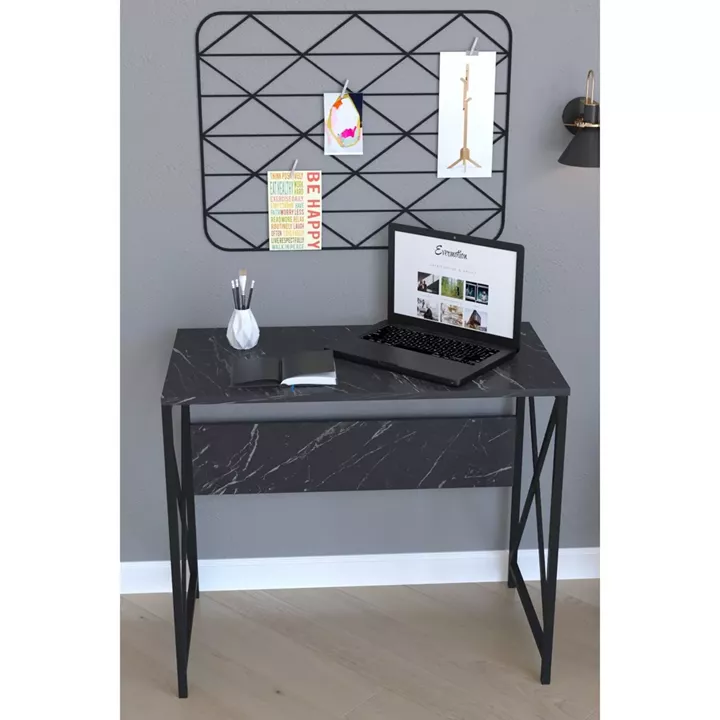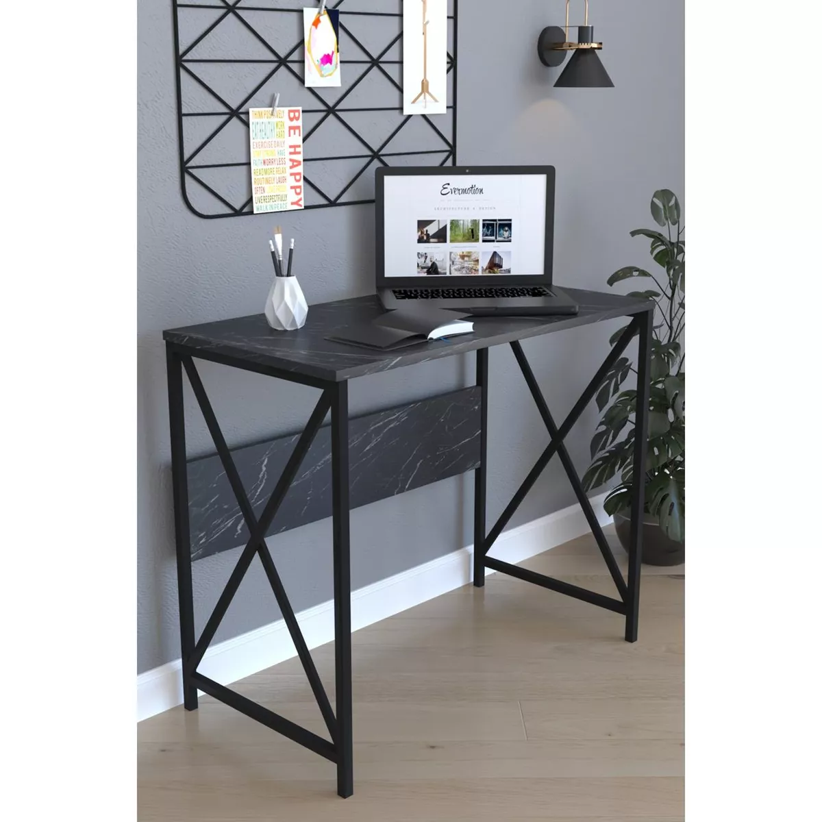 Γραφείο ArteLibre CASILDA Μαύρο/Όψη Μαρμάρου Μέταλλο/Μοριοσανίδα 75x90x45cm
