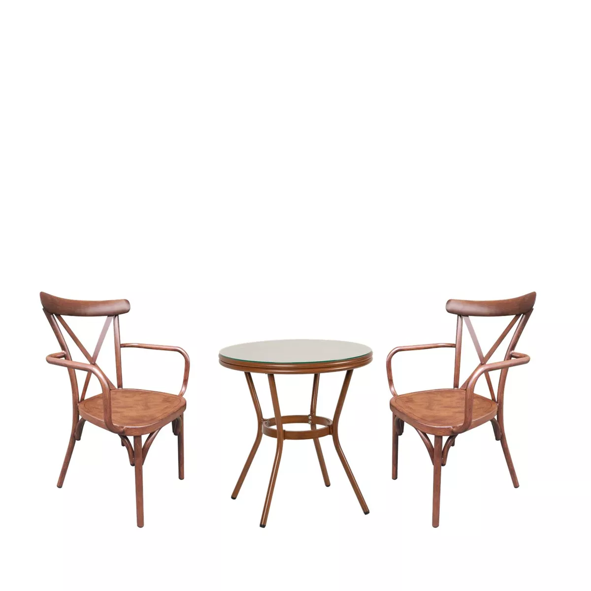 Σετ Τραπεζαρία Κήπου ArteLibre BURUNDI Μπαμπού Αλουμίνιο/Γυαλί Με 2 Καρέκλες 14990215
