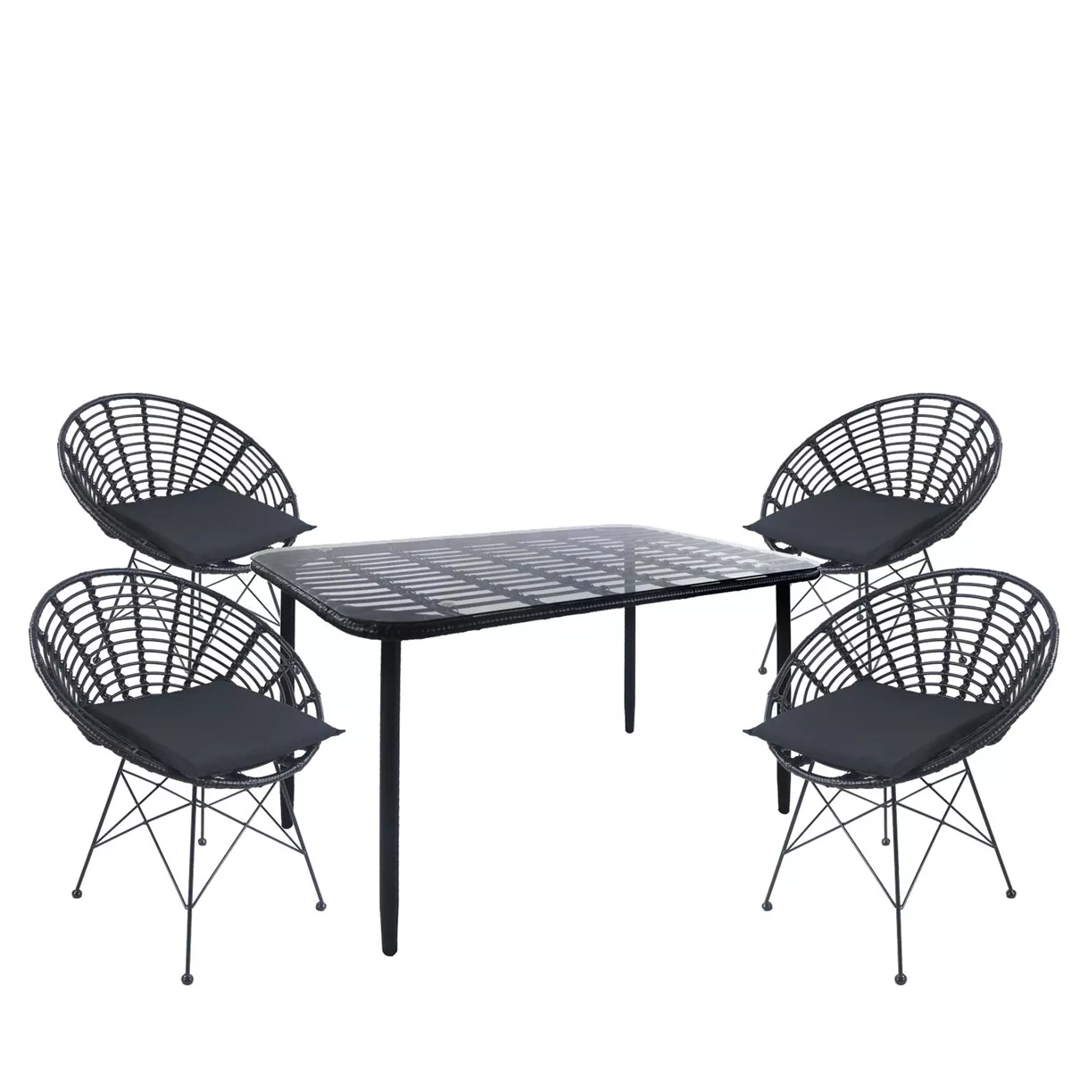 Σετ Τραπεζαρία Κήπου ArteLibre ANNIUS Μαύρο Μέταλλο/Rattan/Γυαλί Με 4 Καρέκλες 14990384
