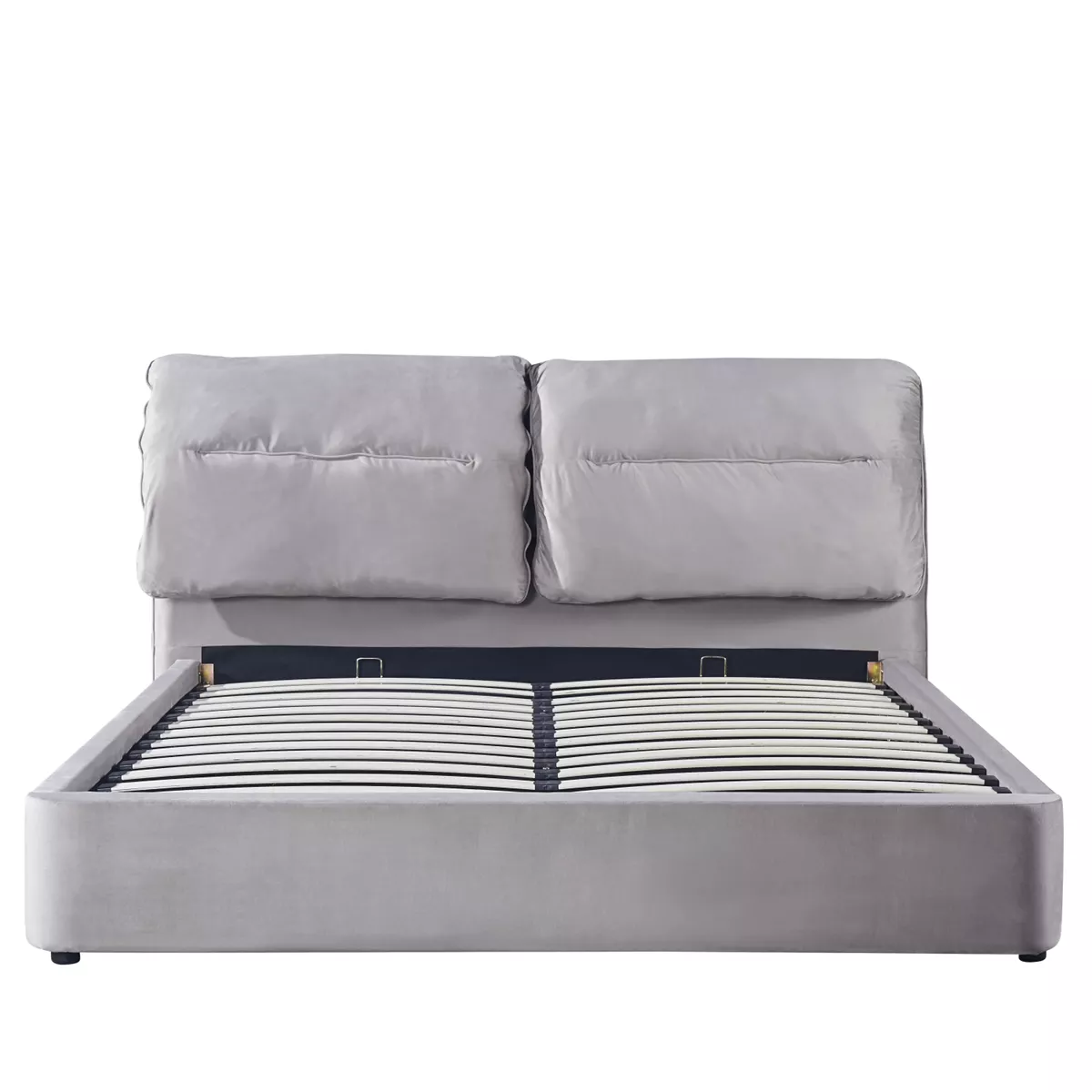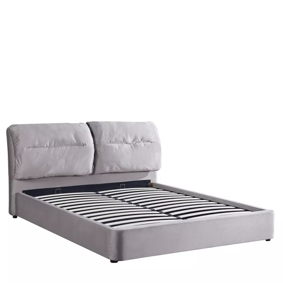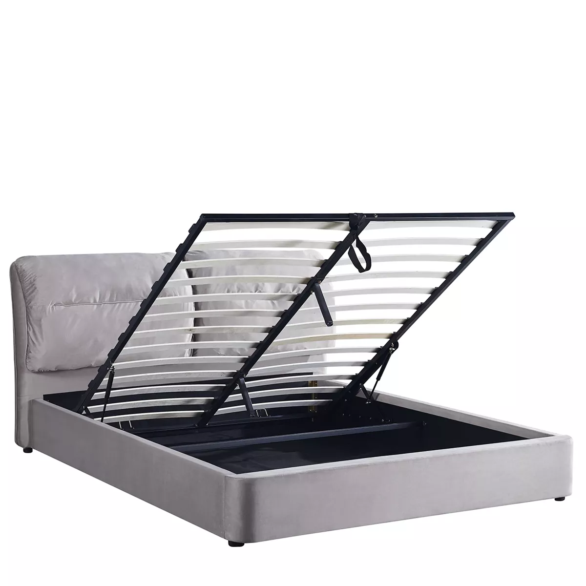 Κρεβάτι Διπλό ArteLibre ACAENA Γκρι Βελούδο (Στρώμα 160x200cm)