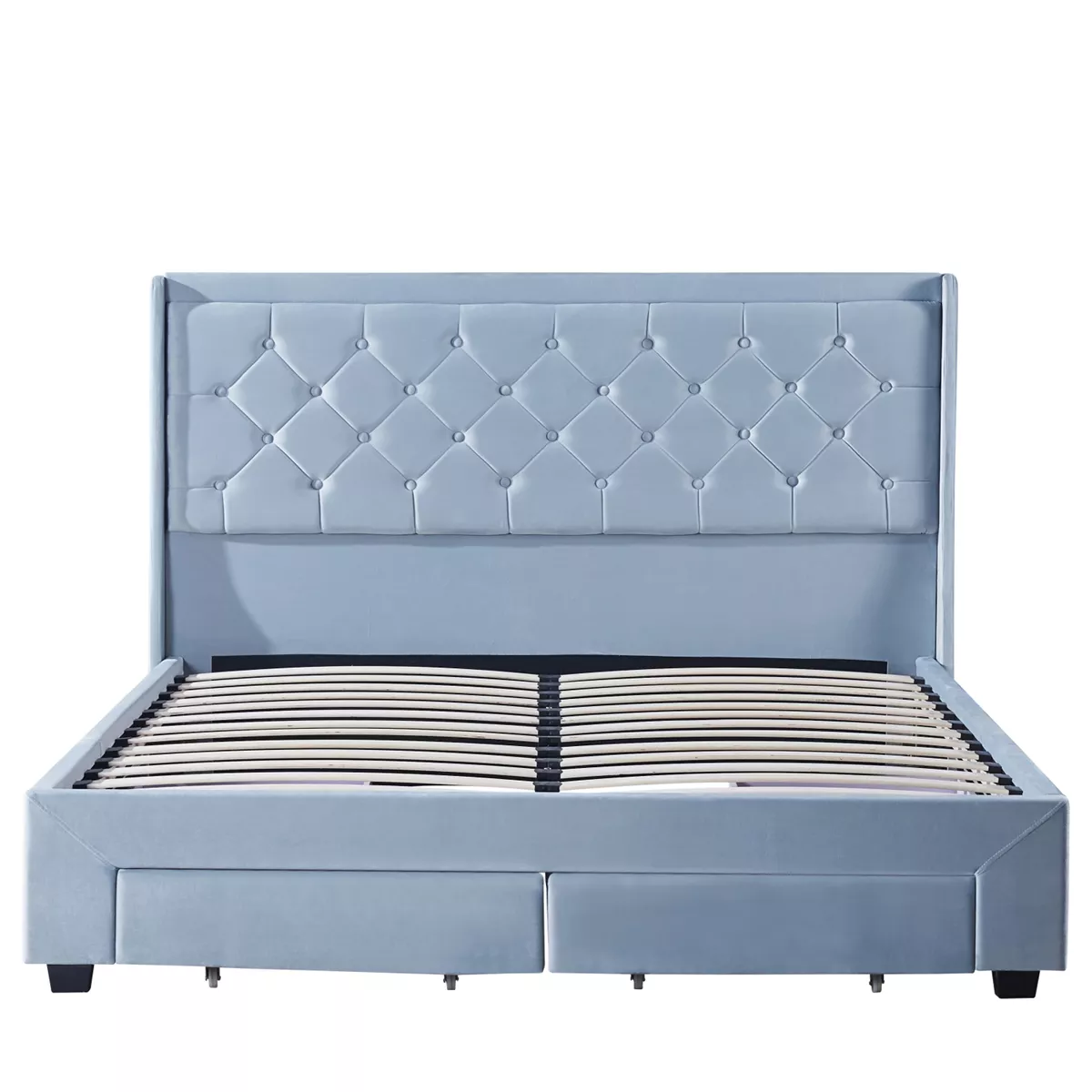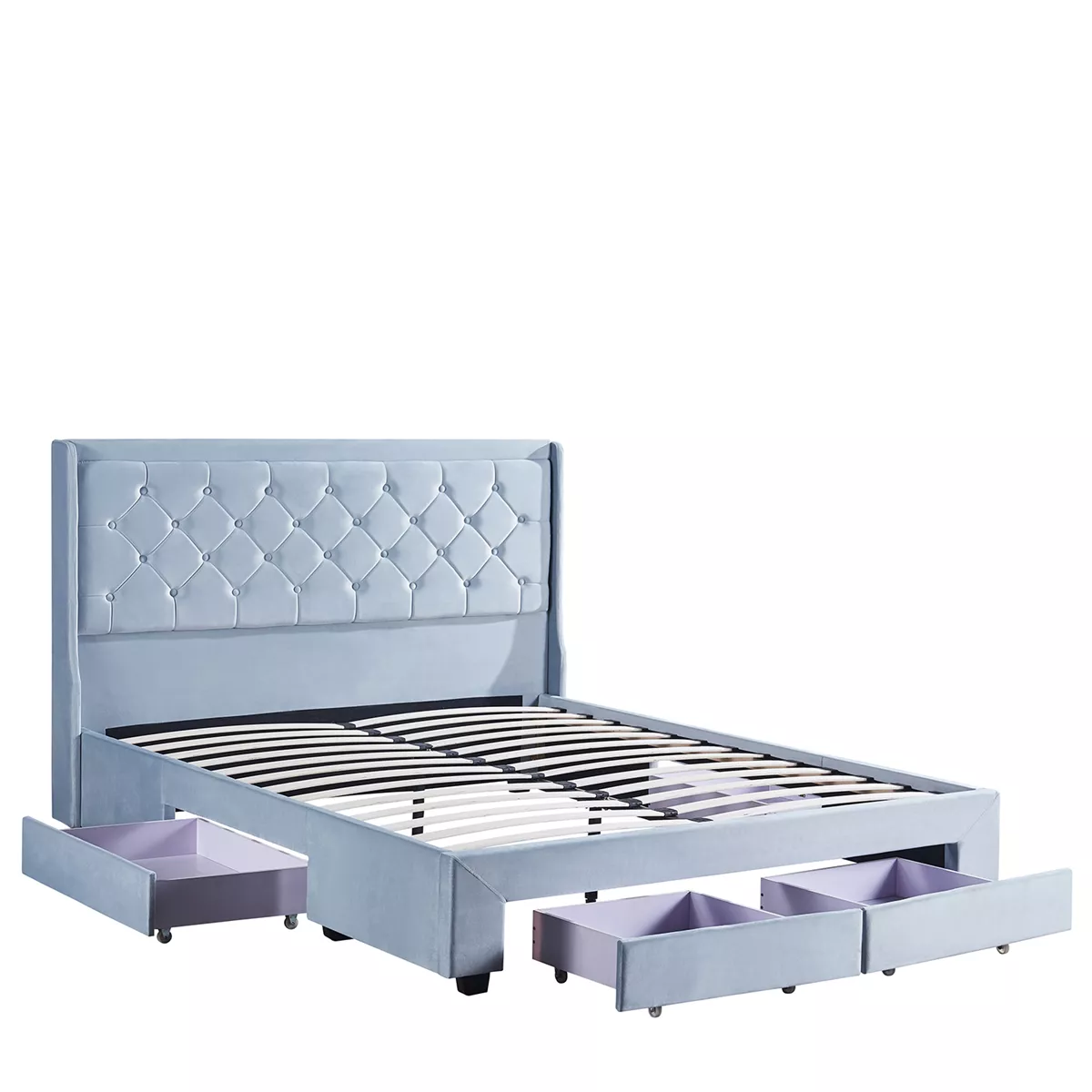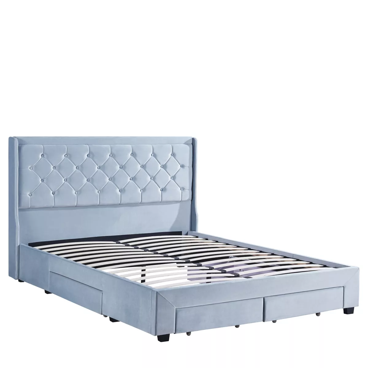 Κρεβάτι Διπλό ArteLibre ANNONA Γαλάζιο Βελούδο (Στρώμα 160x200cm)