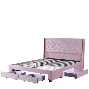 Κρεβάτι Διπλό ArteLibre ANNONA Ανοιχτό Ροζ Βελούδο (Στρώμα 160x200cm)