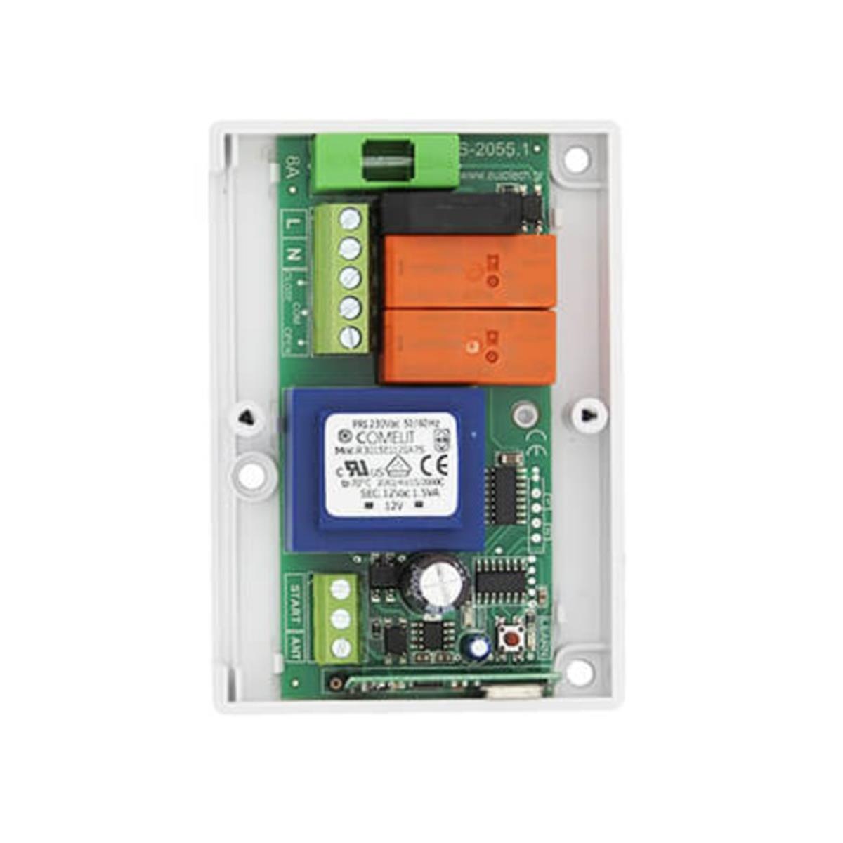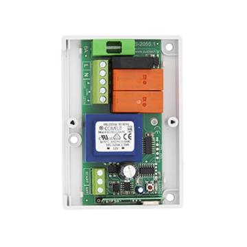 Ενσωματωμένος δέκτης 433,92 MHz PLL με δυνατότητα καταχώρησης μέχρι 250 τηλεχειριστήρια. Έξοδος για προειδοποιητικό φανό, φώτα ασφαλείας. Είσοδος για εντολή από μπουτόν. Διαγνωστικά LED για έλεγχο όλων των εισόδων κατά την εγκατάσταση και λειτουργία της πόρτας