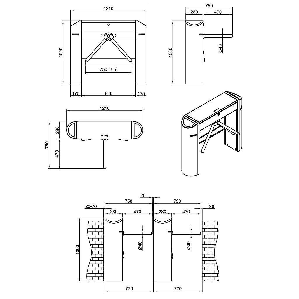 • Τουρνικέ 3 βραχιόνων, μονή διέλευση ανά άτομο