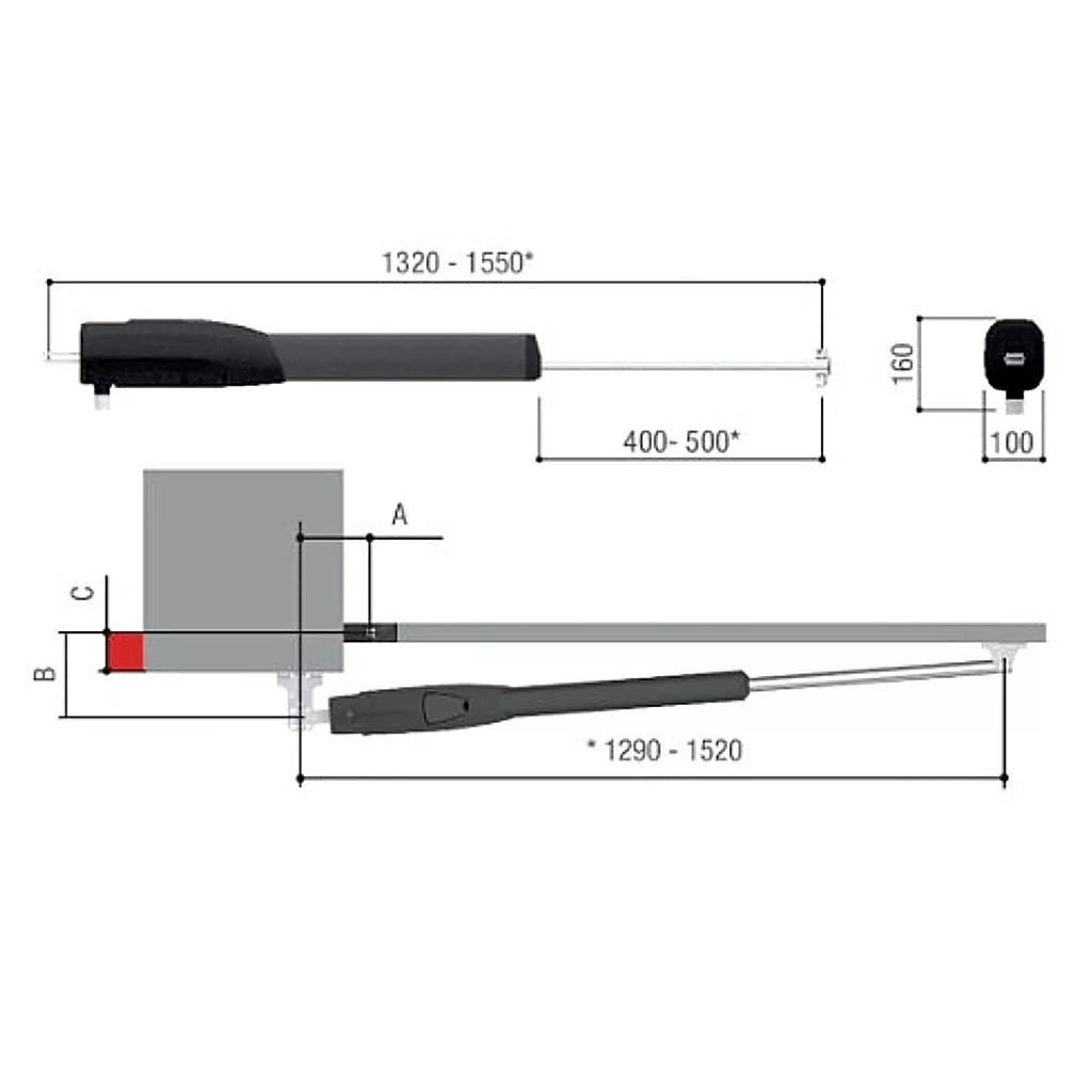 Το CAME ATS 30 είναι τηλεσκοπικό μπράτσο 230V σχεδιασμένο για απαιτητικές εγκαταστάσεις με δίφυλλες πόρτες έως 3 m και 400 kg ανά φύλλο.