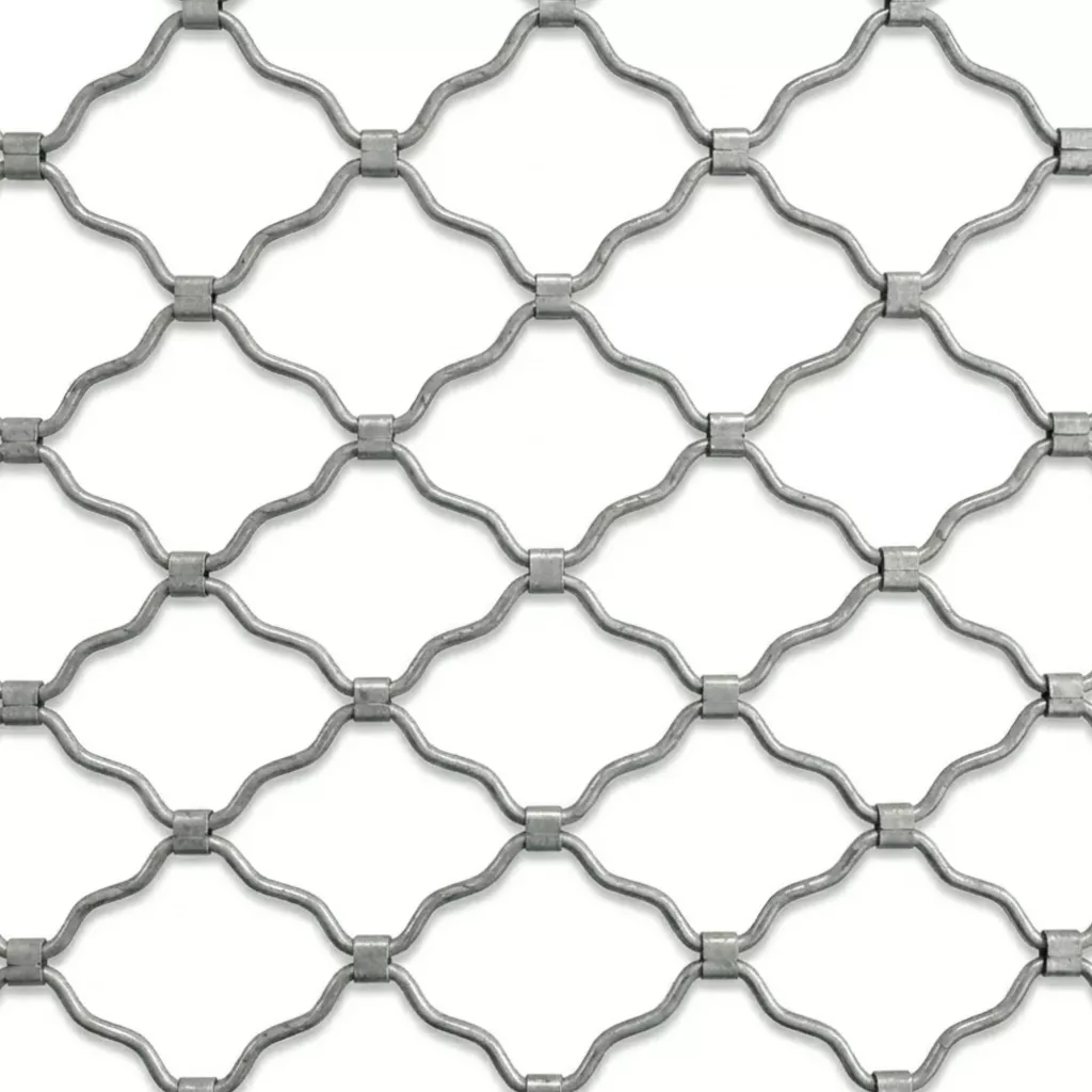 Άβαφο γαλβανιζέ δικτυωτό ρολό ασφαλείας με μεγάλο μάτι 12x17 εκ., κατάλληλο για βιτρίνες, καταστήματα, εισόδους επαγγελματικών χώρων και σημεία όπου χρειάζεται προστασία χωρίς να κρύβεται ο εσωτερικός χώρος.