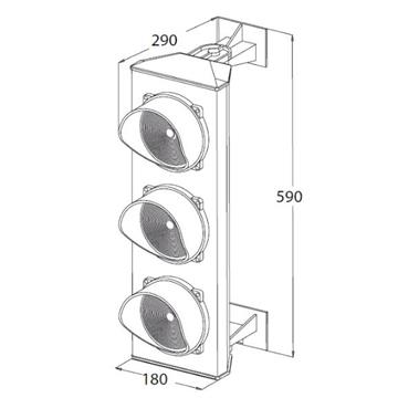 Φωτεινός σηματοδότης τριών πεδίων διαμέτρου 120 mm σε κόκκινο - κίτρινο - πράσινο χρώμα ASF3GRV