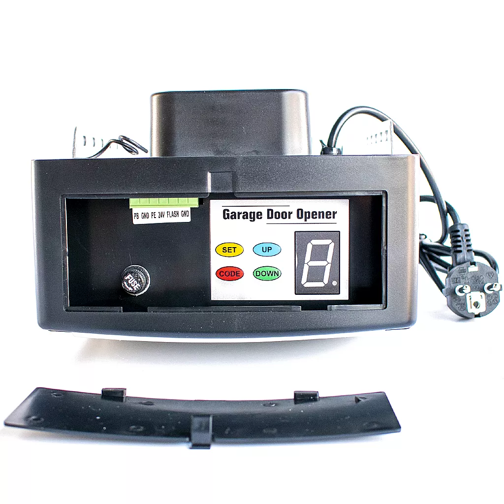 Υποστηρίζει σύνδεση εξωτερικού μπουτόν, φωτοκυττάρων, soft start-stop, κίνηση με ιμάντα (standard) ή αλυσίδα (optional), καθώς και προαιρετική back-up μπαταρία 24V για λειτουργία χωρίς ρεύμα.