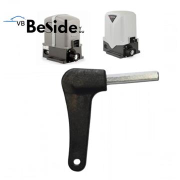 Κλειδί απασφάλισης συρόμενου αυτοματισμού Proteco Mover (αφορά τις σειρές 500Kg-800Kg-1.500Kg). Σε περίπτωση διακοπής ηλεκτρικού ρεύματος, η πόρτα ανοίγει χειροκίνητα απελευθερώνοντας την με τη χρήση κλειδιού.