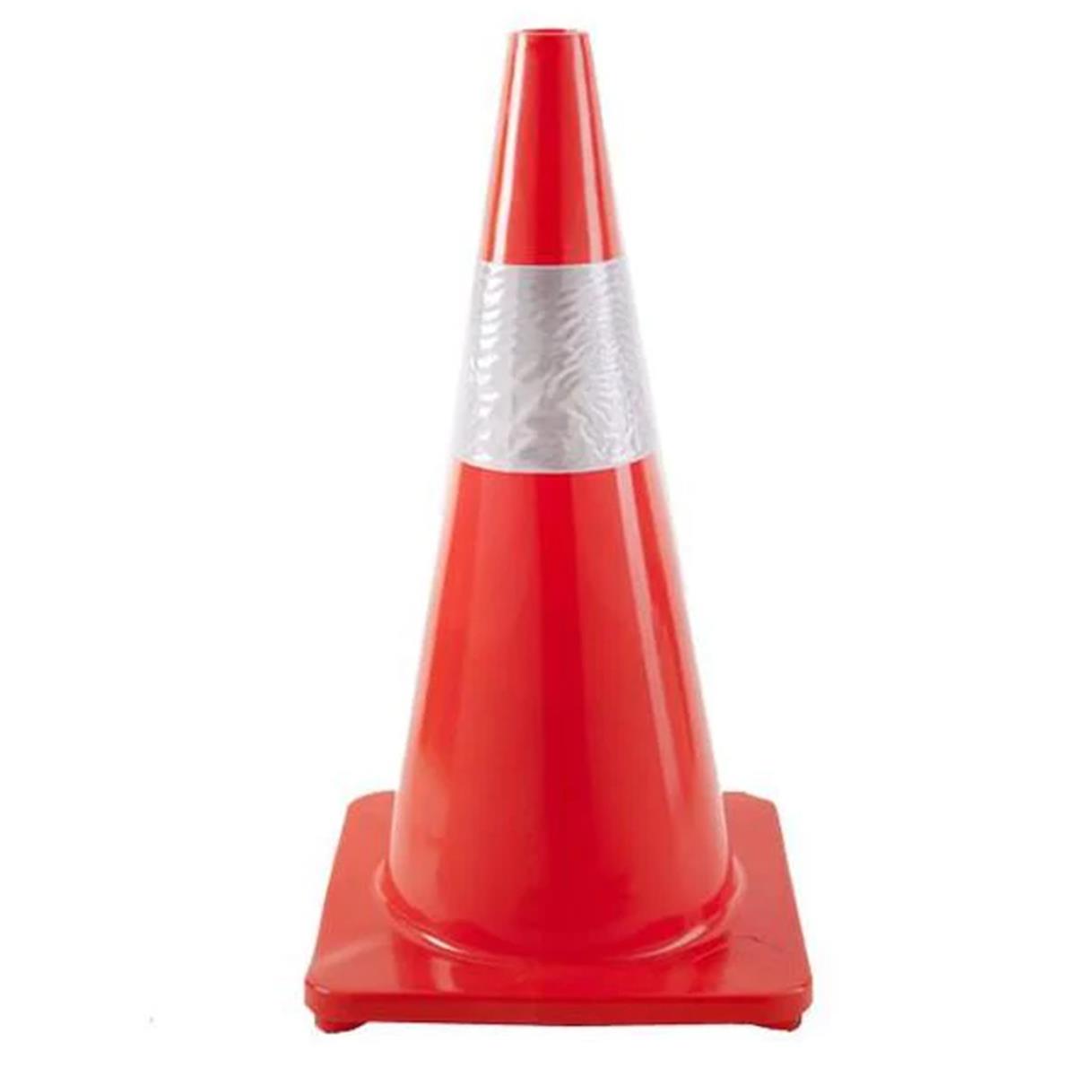 Κώνος κυκλοφορίας ύψους 45cm από εύκαμπτο μαλακό PVC ώστε να επανέρχεται στην αρχική του κατάσταση ακόμα και αν πατηθεί από αυτοκίνητα, φορτηγά ή γενικά διερχόμενα οχήματα. Διαθέτει βάση από το ίδιο υλικό και μία υψηλής διακριτικότητας λευκή ανακλαστική ταινία για καλύτερη ορατότητα μέρα νύκτα από οποιαδήποτε γωνία.