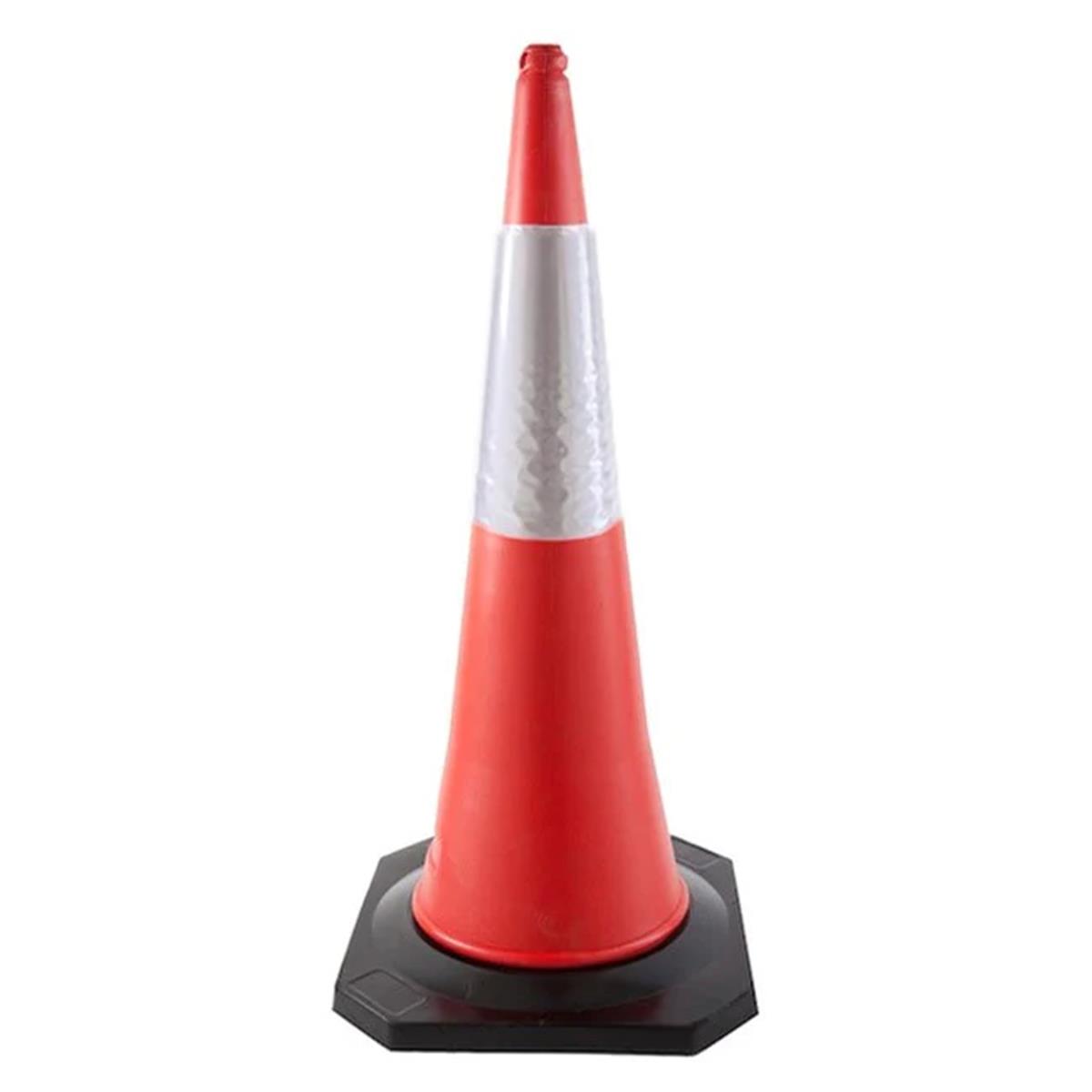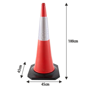 Κώνος κυκλοφορίας ύψους 100cm (1 μέτρο) από πλαστικό PE (πολυαιθυλένιο). Διαθέτει μία λευκή ανακλαστική ταινία για καλύτερη ορατότητα μέρα νύχτα από οποιαδήποτε γωνία. Διατίθεται με ανεξάρτητη μαύρη βάση βαρέως τύπου από συνθετικό καουτσούκ.