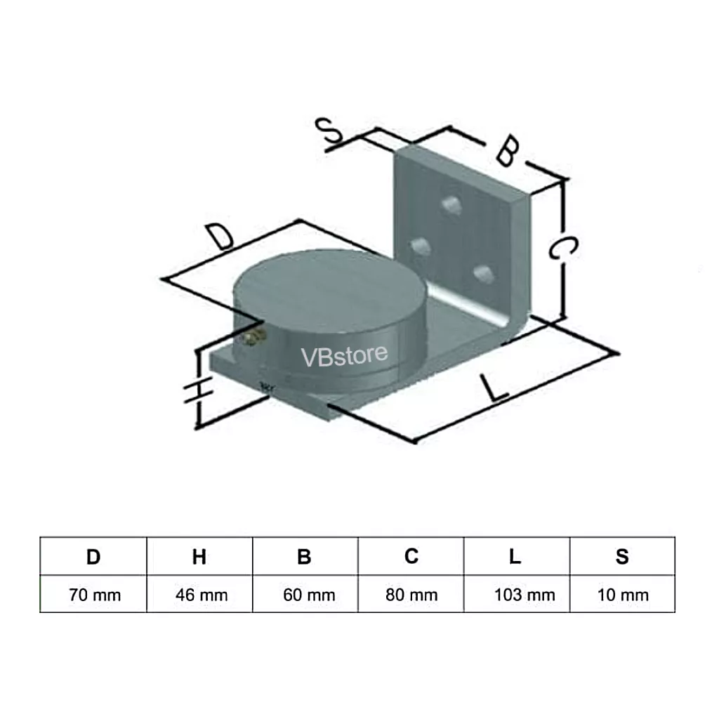 1 κάτω μεντεσές ρουλεμάν 7 cm με γωνιακό στήριγμα
