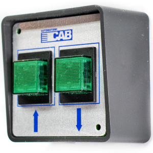 Μπουτονιέρα με πλαστικό κέλυφος δύο πλήκτρων. Είναι κατάλληλη για έλεγχο ρολών