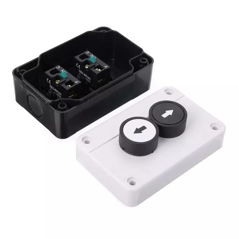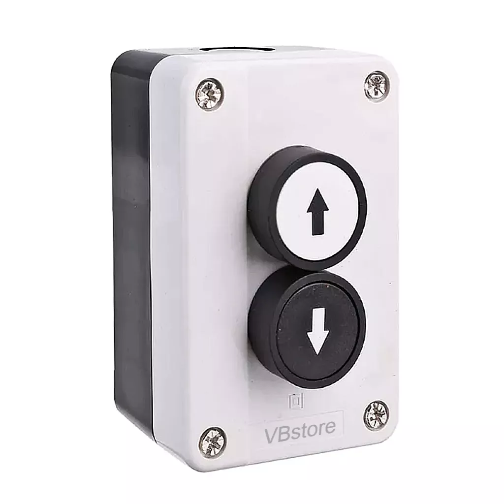 Μπουτονιέρα 2 πλήκτρων Up, Down, στιγμιαίας επαναφοράς, κουμπιά IP54, κουτί IP40, Ø30mm, χρήση με 230Vac ή ξηρές επαφές, κατάλληλη για μπάρες, ρολά, συρόμενες, ανοιγόμενες πόρτες.