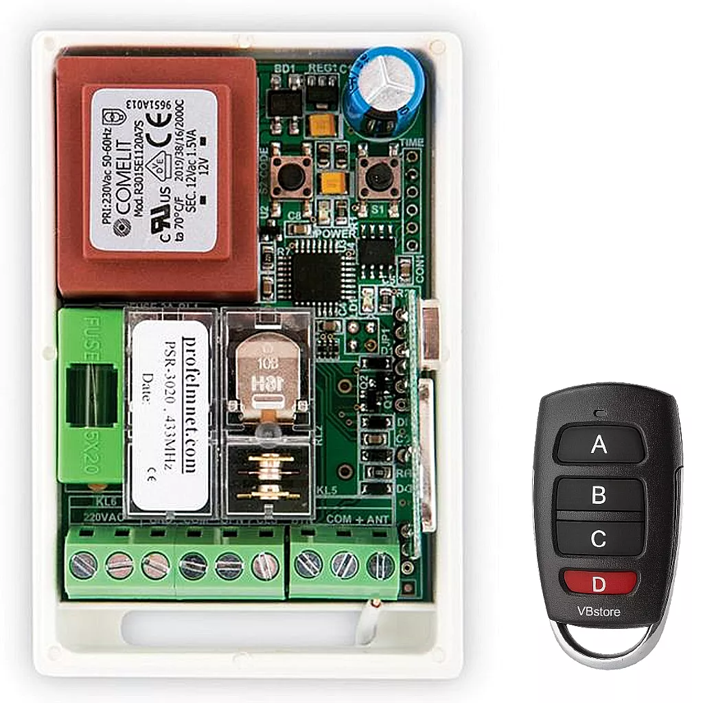 Πίνακας ρολού 230V με 433,92 MHz σταθερό κωδικό, έως 300 remotes, έξοδο μοτέρ 1200W και χρόνο 1 έως 180s. Σταθερή λειτουργία, εύκολη εγκατάσταση.