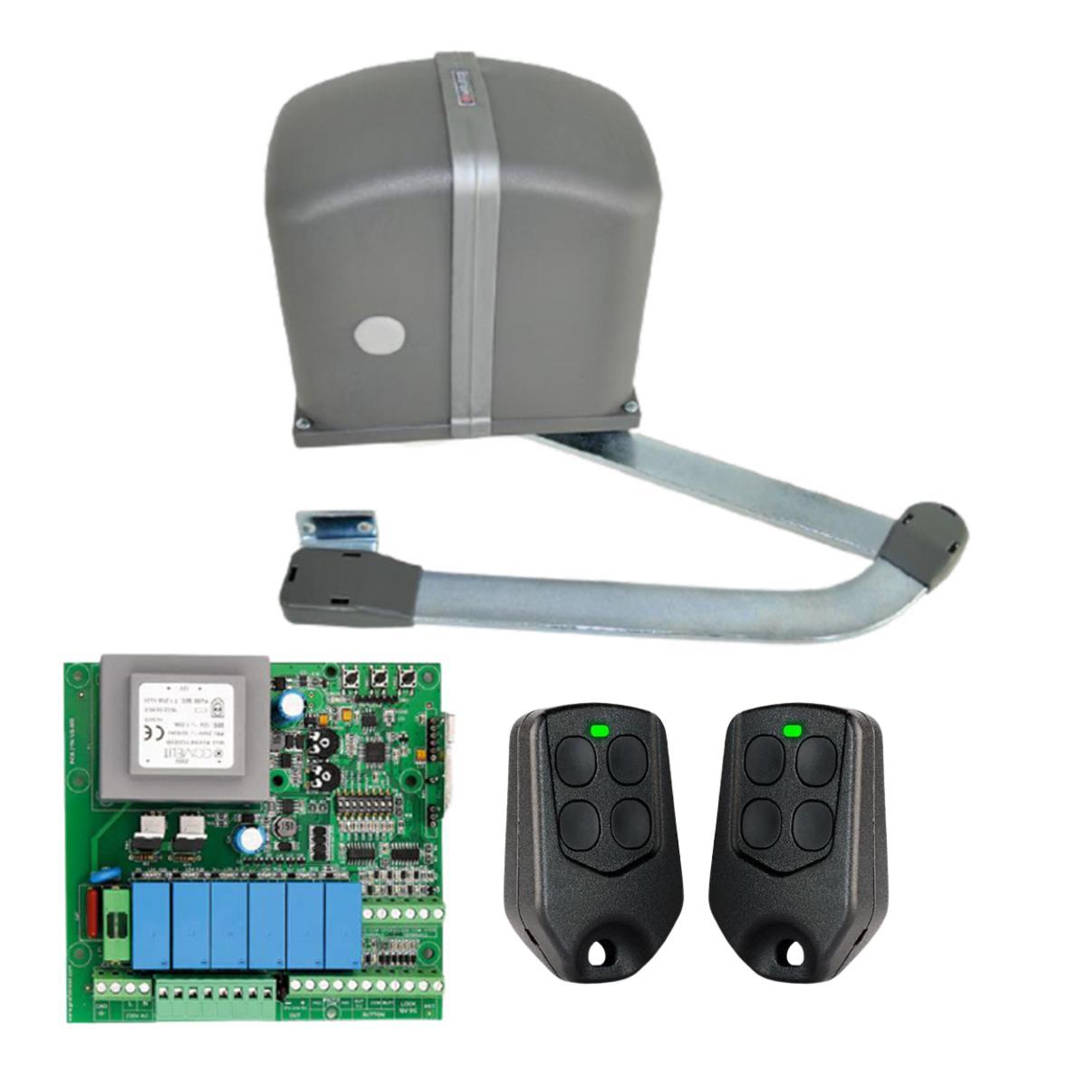 Ενσωματωμένος πλήρης αυτοματισμός 110/230VAC για μοτέρ έως 2400watt. Εξελιγμένος στην κατασκευή του και προηγμένος στις λειτουργίες του. Εύκολος στον προγραμματισμό του. Δέχεται έως 300 χειριστήρια. Διπλό αυτόματο κλείσιμο, λειτουργία πεζού, λειτουργίας αργής κίνησης κατά το κλείσιμο της διαδρομής, ρύθμιση δύναμης της αργής κίνησης.
