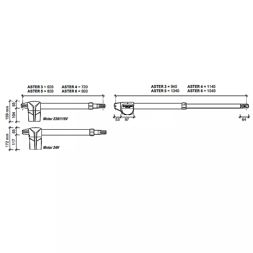 Ιταλικό μοτέρ 230V για μονόφυλλη πόρτα έως 3,5 m και 250 kg. Αλουμινένιο σώμα, εύκολη χειροκίνηση, IP44. Σετ με πλακέτα Profelmnet 3433 και 1 τηλεχειριστήριο.