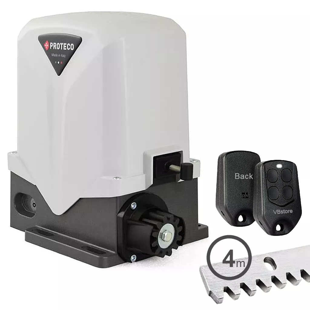 Ιταλικό μοτέρ 230V για συρόμενη γκαραζόπορτα έως 500kg, κατασκευή αλουμινίου με μπρούτζινα γρανάζια, ταχύτητα 8,5 m/min, αυτοματισμός Profelmnet, PSR86T rolling code, περιλαμβάνει 4m κρεμαγιέρα.