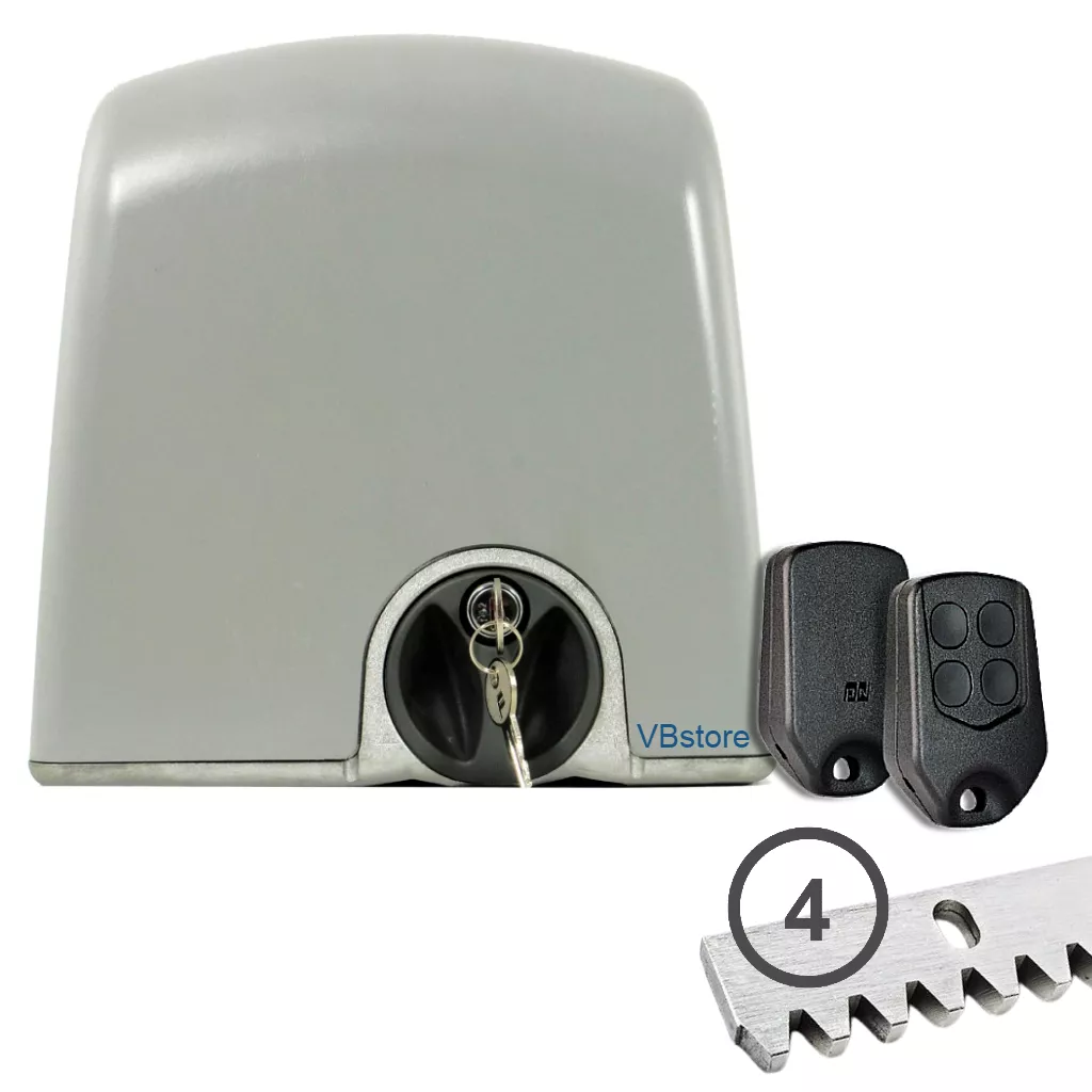 Ιταλικό μοτέρ 230V για συρόμενη πόρτα έως 500kg, ταχύτητα 10 m/min, τερματικοί ηλεκτρομηχανικοί, επιβράδυνση, auto-close, πεζός, φωτοκύτταρα 24Vac. Πακέτο με 4m κρεμαγιέρα και 1 PSR86T.