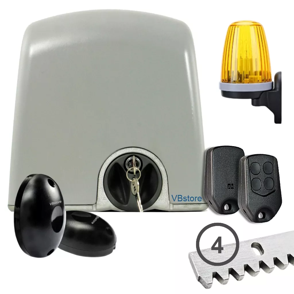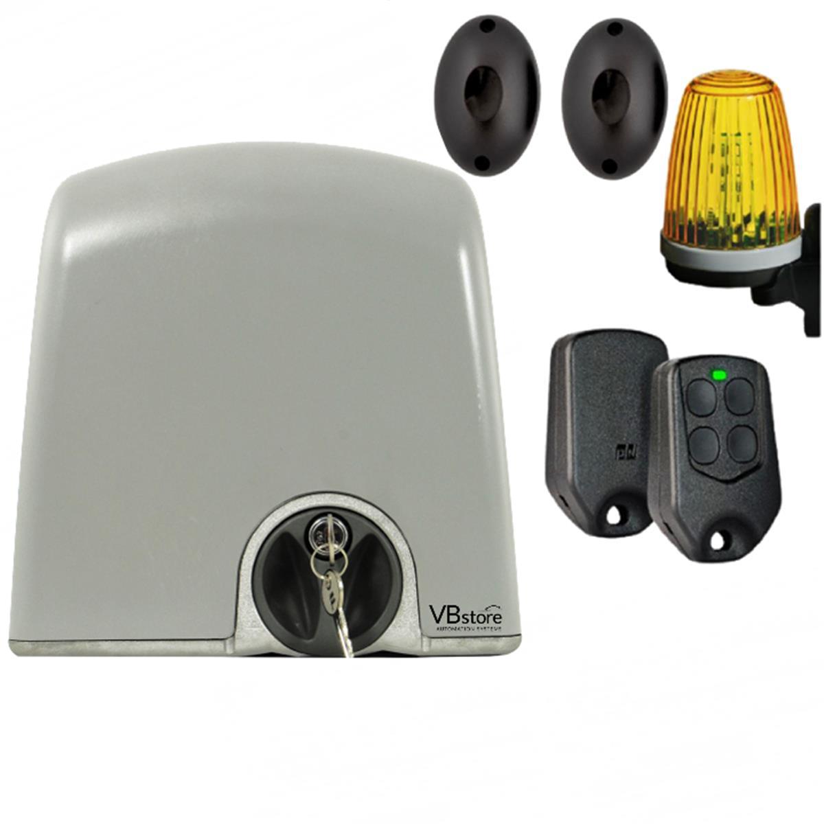 Ιταλικό μοτέρ 230V για συρόμενη πόρτα έως 800kg, ενσωματωμένος πίνακας, κρεμαγιέρα 4 m, φάρος LED, φωτοκύτταρα, 1 τηλεχειριστήριο PSR86T rolling code. Αθόρυβη και στιβαρή λειτουργία.