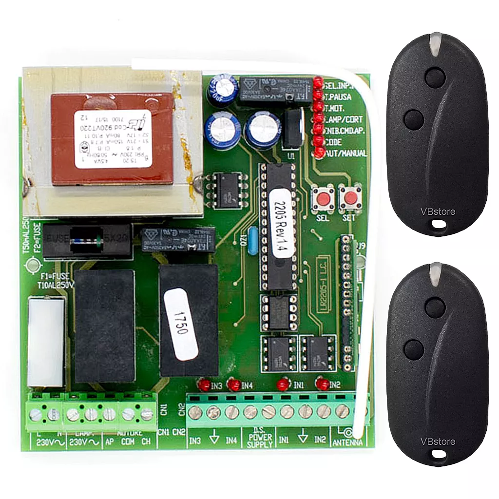 SEAV LRS 2205 με 2 τηλεχειριστήρια | Ηλεκτρονικός πίνακας για συρόμενη γκαραζόπορτα 230V έως 1500W